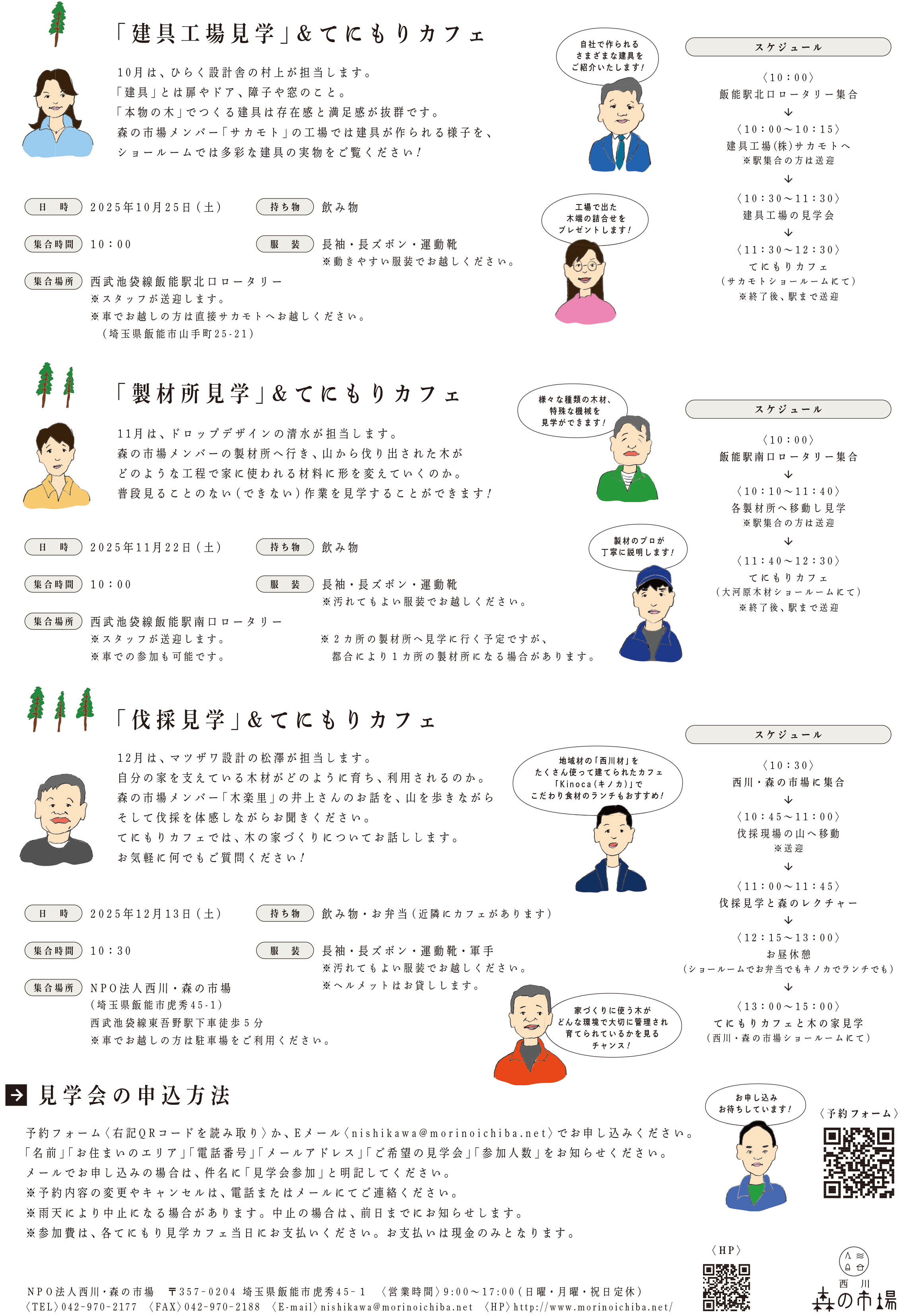 建具工場の見学、製材工場の見学、森での伐採見学を3回に分けて行います。